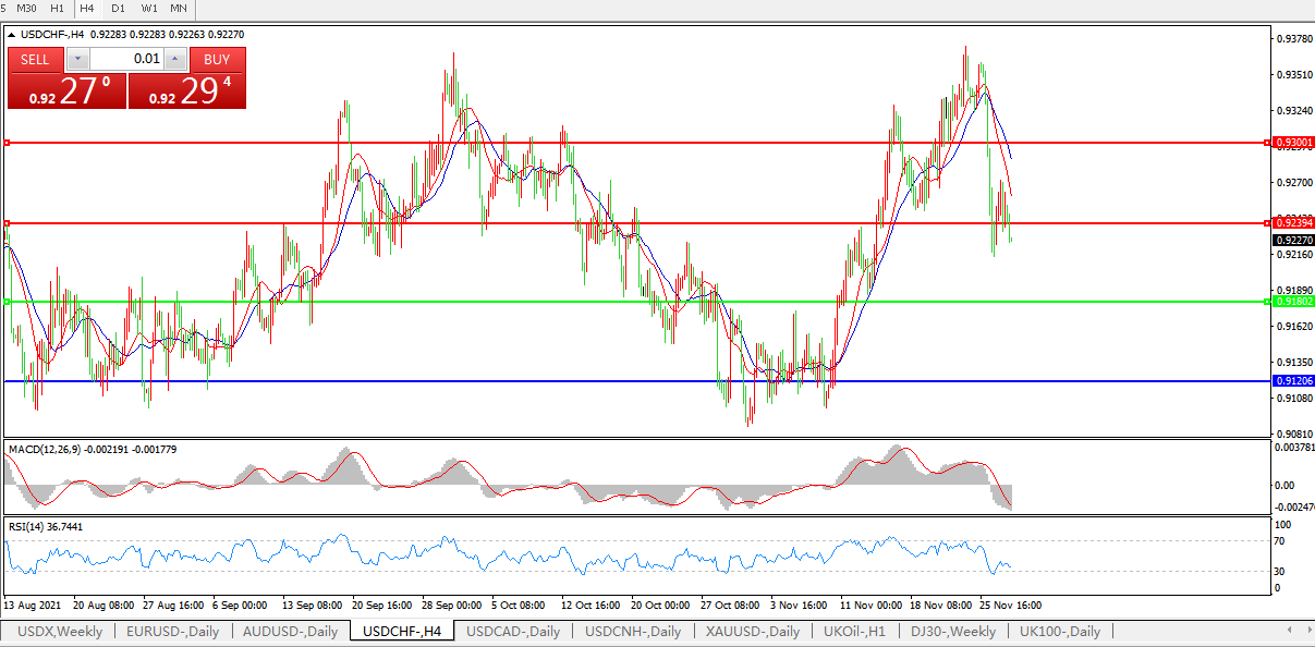 美元兑瑞郎USDCHF    4小时图: