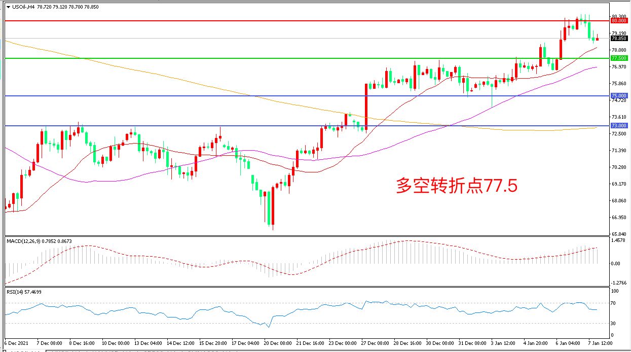 交易策略:在77.50之上看涨,目标80.00        83.00