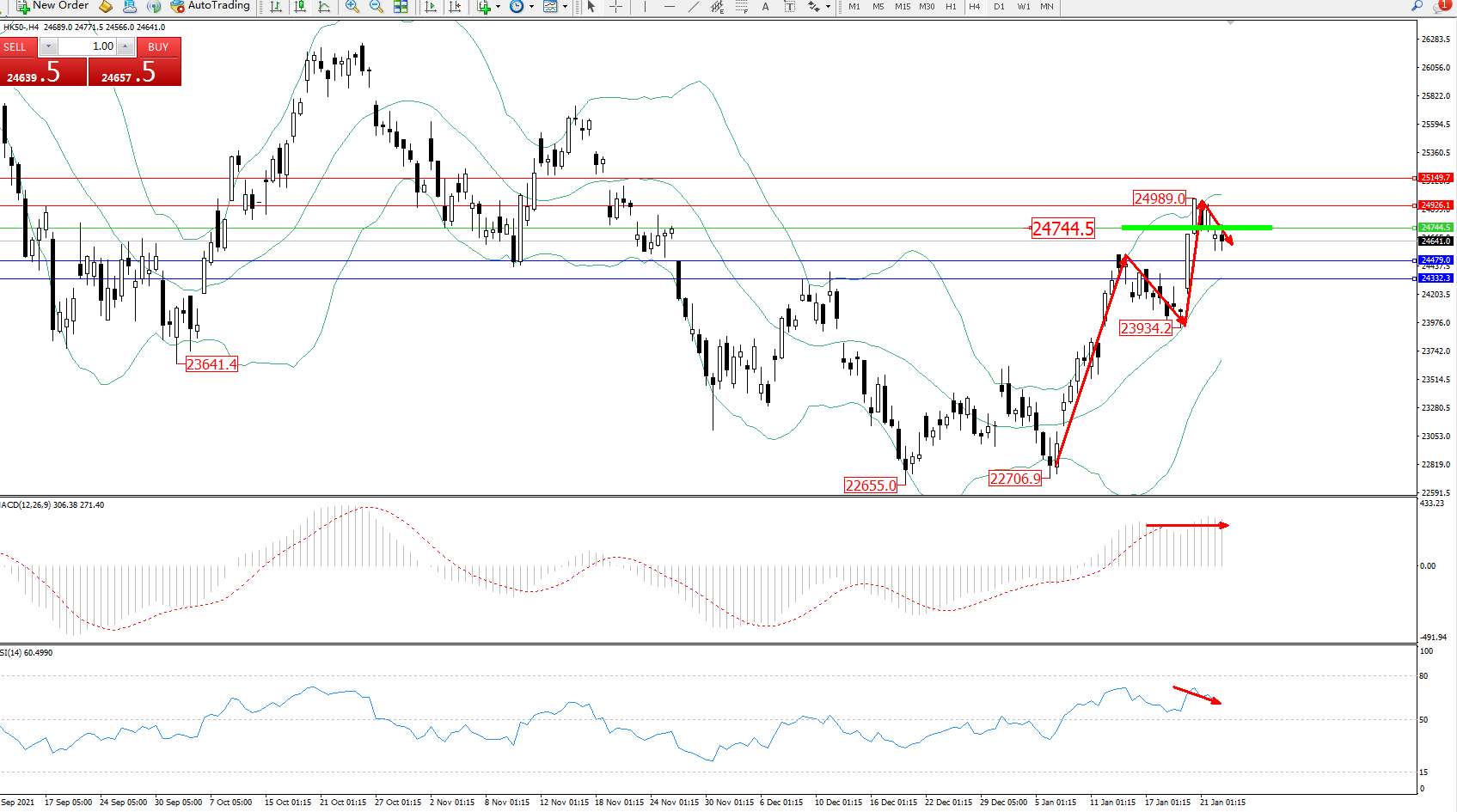 香港恒生指数1月24日(周一)收盘下跌309.09点,跌幅1.24%,报24656.46点;港股指数全天维持弱势行情,市场情绪表现低迷。恒生科技指数跌2.84%。上周五美股科技股大跌,拖累港股科技股集体走低,网易跌超7%,阿里巴巴跌超6%,京东、百度、腾讯等皆有跌幅;南下资金逆势净流入35.75亿港元,大市成交额为1243亿港元。香港投资推广署署长傅仲森表示,去年海外及内地驻港公司数目增至9049家创新高,虽有公司削减香港业务,但未见企业大规模撤出,亦未见香港出现走资。以宏观趋势来看,未见任何不寻常。傅仲森指出,市场上仍有不少内地企业打算透过香港集资,亦有企业从美国退市后考虑来港上市,预期在港内地公司数量增速会继续保持强劲。