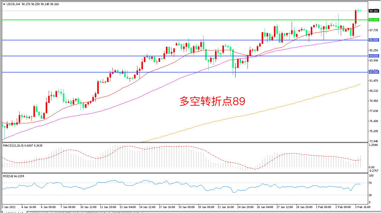 交易策略:在89.00之上看涨,目标92.00 95.00