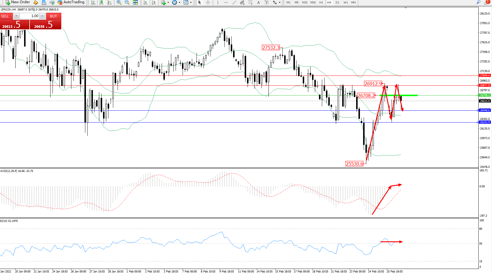 日经225指数2月28日(周一)收盘上涨34.00点,涨幅0.13%,报26510.50点。日本1月工厂产出连续第二个月萎缩,因为汽车行业正努力应对疫情造成的停产,而俄罗斯对乌克兰的入侵让本就面临萎缩风险的经济承受更大压力。甚至在乌克兰危机爆发之前,日本的工厂就在勉力应对全球零部件供应中断和疫情蔓延。由于受到供应链中断打击以及国内新冠感染病例增速创纪录带来压力,包括丰田和铃木在内的日本汽车生产商面临减产。乌克兰危机的连带影响对日本的产出和更广泛经济构成了严重的下行风险,如果冲突引发全球商品和能源短缺,产出可能会受到抑制。