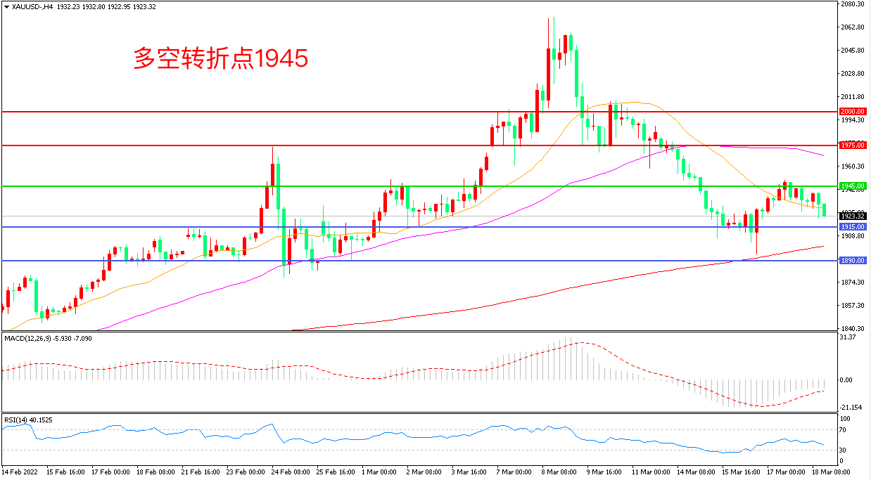 备选策略:在1915.00之下看跌,目标1890.00 1865.00