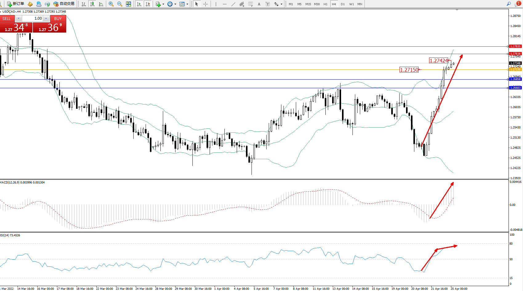交易策略:1.27150上方看涨,目标1.27616、1.27835