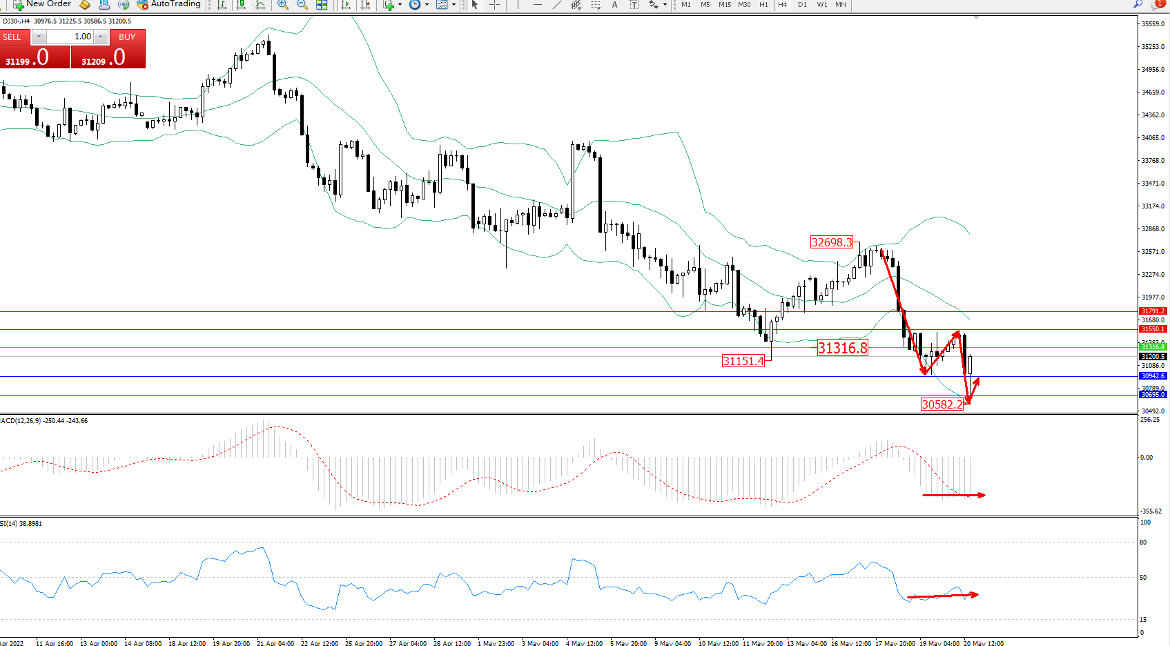 技术点评:空头动力延续布林带指标通道中下轨区间持续震荡下行,低位抵达30582附近节点后快速回升,短期低位多头有伺机入场迹象,布林带指标呈空头开口震荡下行后开始收口,MACD指标处于空头区域低位维持整理平移,RSI指标处于空头区域维持窄幅徘徊中;