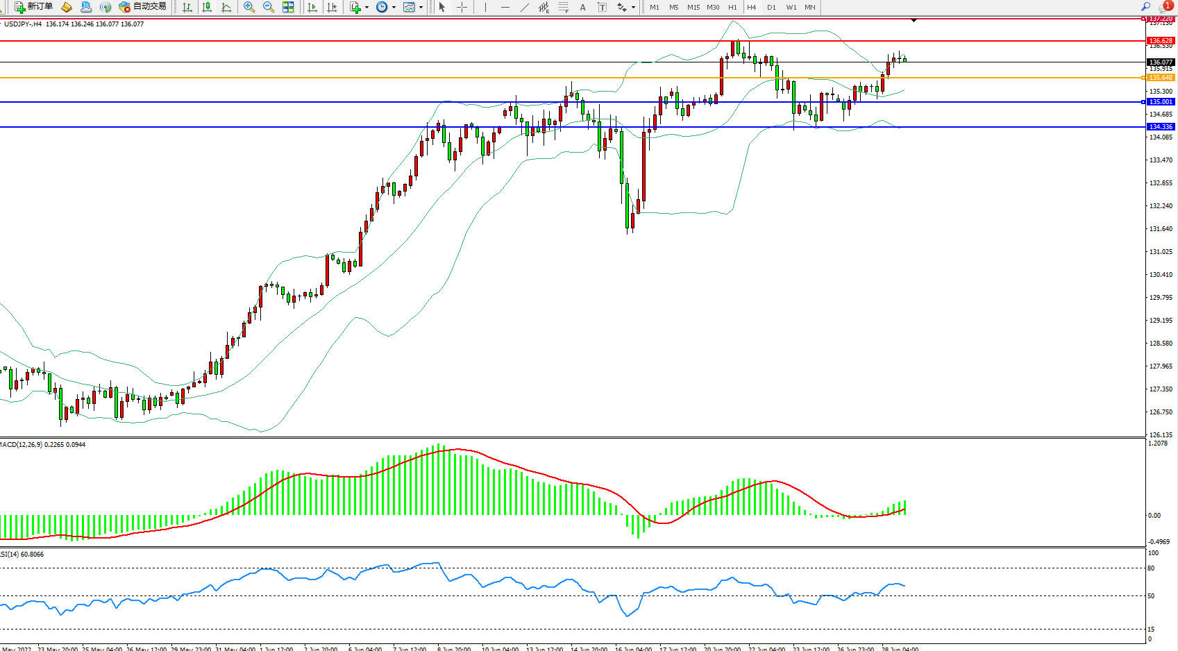 美元兑日圆维持136.077附近震荡,日本央行依旧专注在经济的宽松刺激上,而非随主流央行那般进入紧缩货币时期。美日息差逐步拉大差距,将是影响日元走势绕不开的话题。