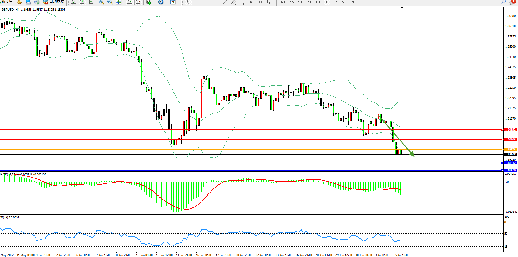 交易策略:1.19576下方看跌,目标1.18842、1.18420