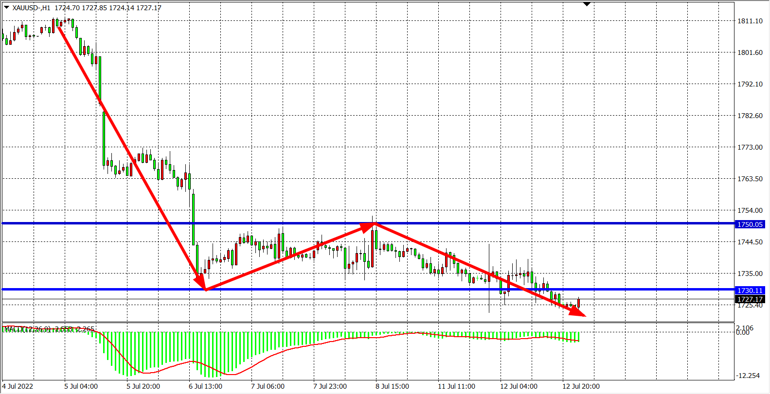 周二(7月12日)各大社交媒体流传一份造假的6月的CPI数据显示通胀依旧高企,模仿了上个月CPI报告的格式,修改了日期和数字。受该乌龙数据影响,现货黄金多次上冲挑战1740美元关口,最终冲关失败,收盘跌破1730美元,最终收跌0.43%。今日将迎来货真价实的CPI数据,按照昨晚各大市场的反应看,若CPI继续高涨有望短线对黄金形成支撑。