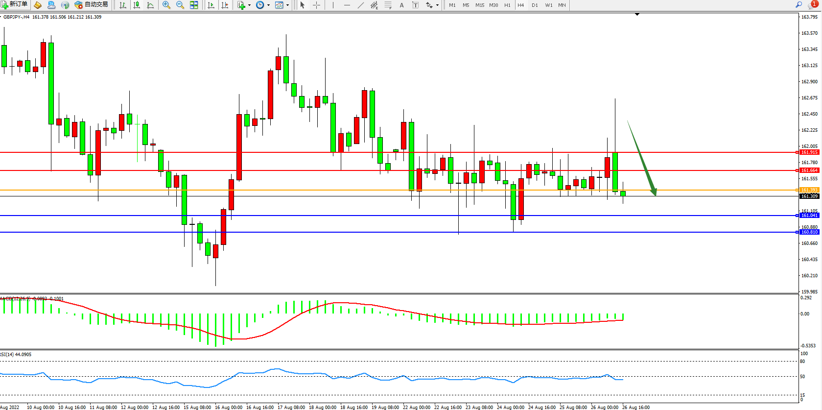 交易策略:161.393下方看跌,目标161.041、160.810