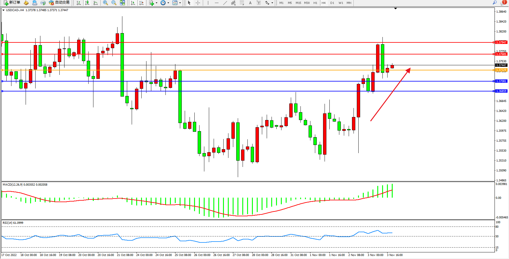 交易策略:1.37329上方看涨,目标1.37685、1.37947