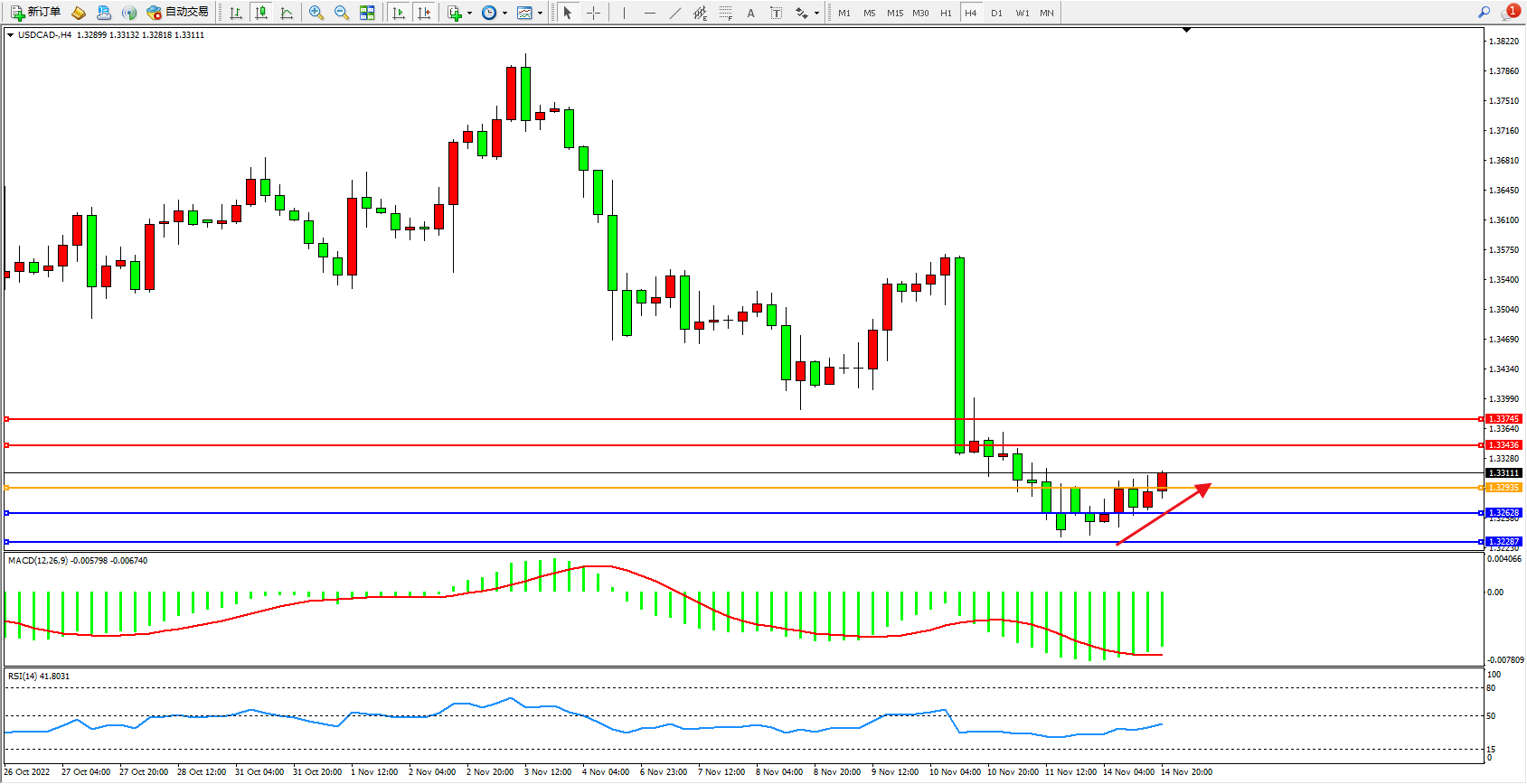 美元兑加元维持1.33133附近震荡,加拿大至11月11日全国经济信心指数 43.35,前值42.3。