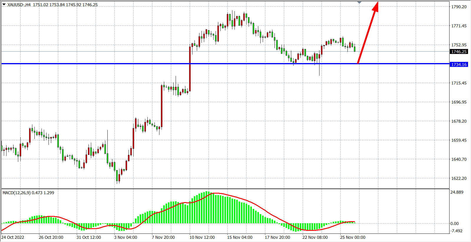 现货黄金XAUUSD    4小时图