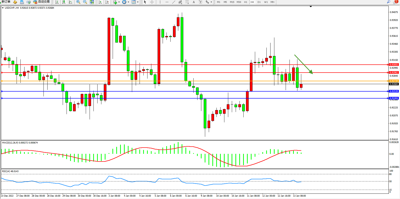 USDCHF:震荡下移 USDCHF  XAUUSD