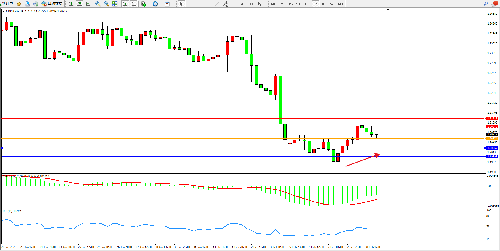 英镑美元GBPUSD ——4小时K线图显示: