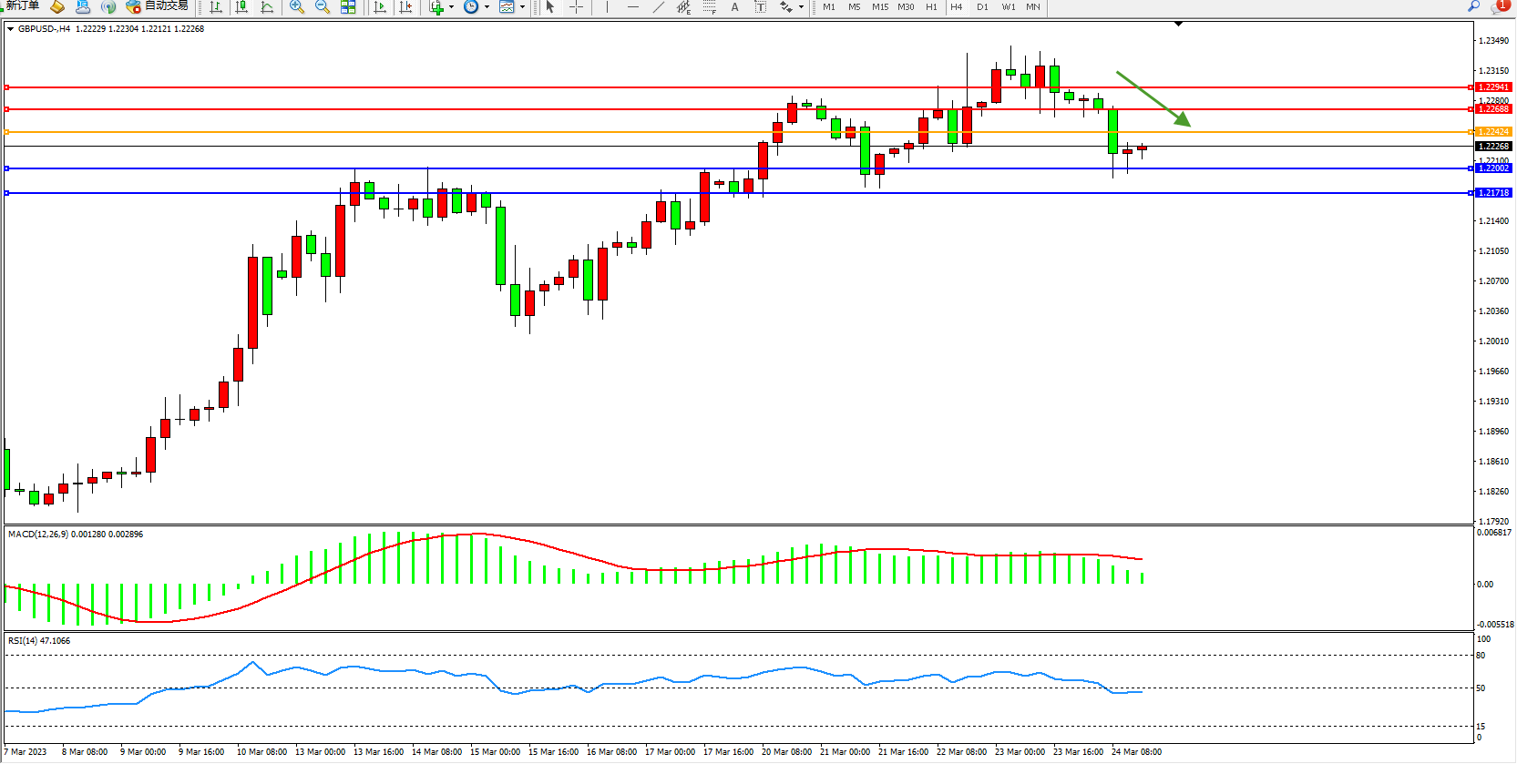 交易策略:1.22424下方看跌,目标1.22002  1.21718