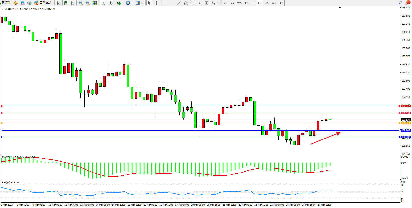 阻力位:131.930 132.347