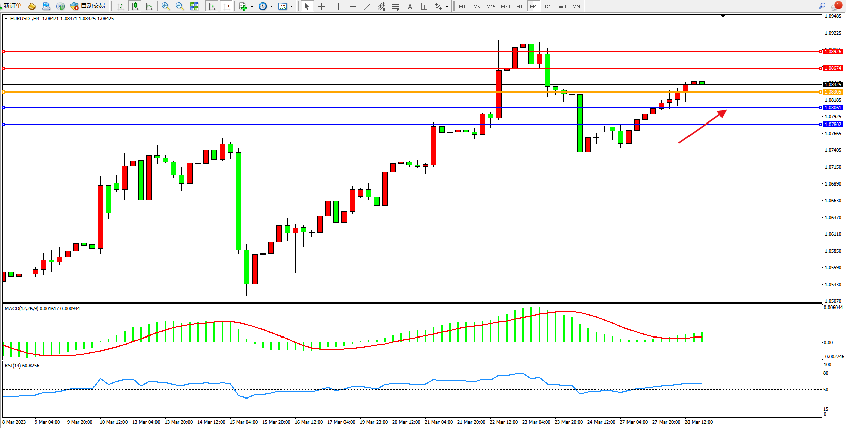 欧元兑美元维持1.08425附近震荡,随着市场对央行的广泛关注转向降息,欧洲央行3月加息50个基点提醒市场:欧洲利率目前不会转向;除非银行业出现明显恶化,信贷条件过度收紧,否则欧洲央行的利率有可能达到3.75%的高点,或者最高达到4.0%。