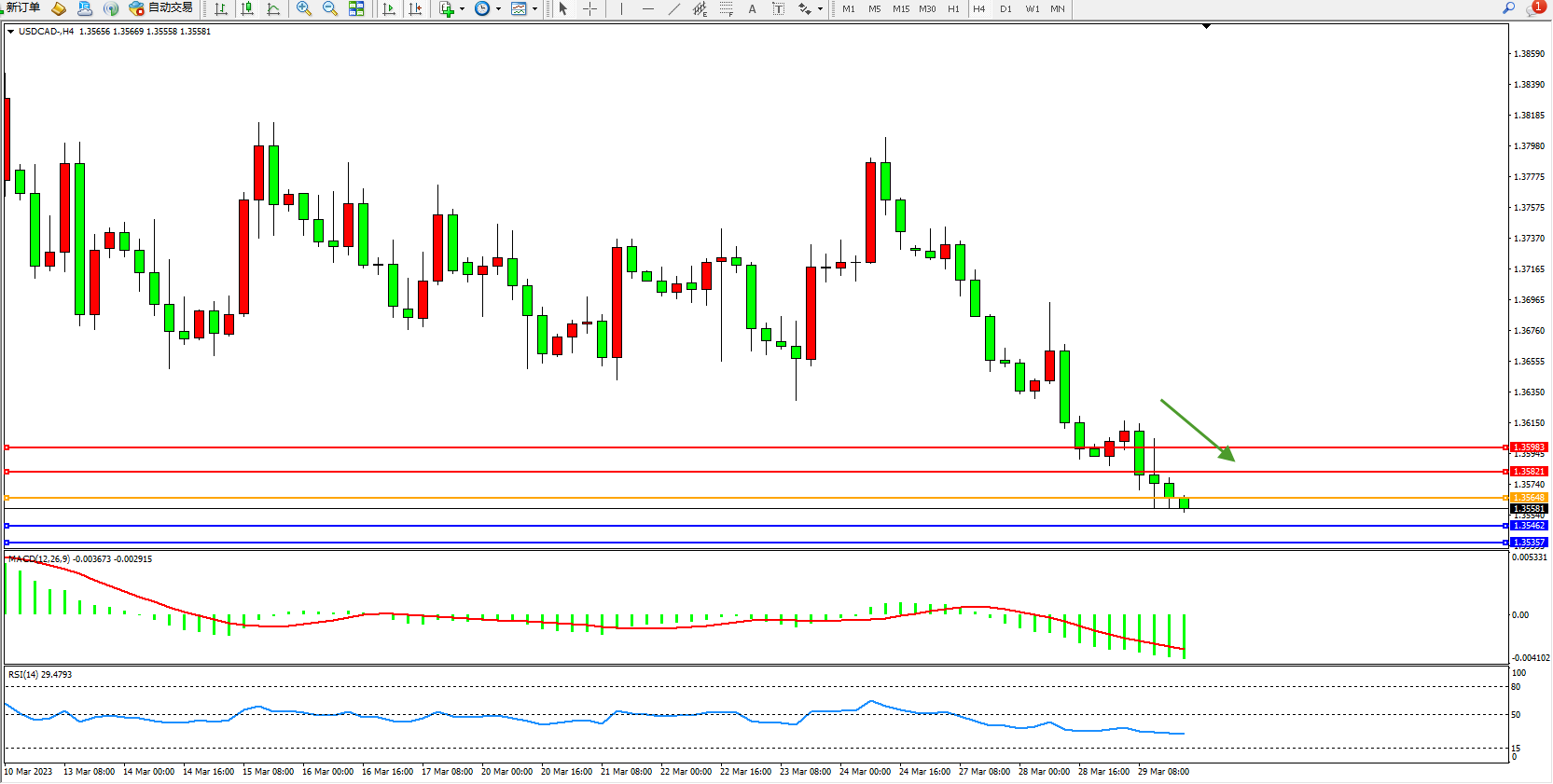 美元兑加元维持1.35581附近震荡,没有人预计加拿大央行会在4月14日加息,利差和普遍增长预期都对加元不利。北美银行业危机可能会蔓延。然而,所有这些负面因素都是已知的。在此基础上做空美元/加元,将从对银行业的担忧逐渐缓解,以及美联储利率见顶中受益。
