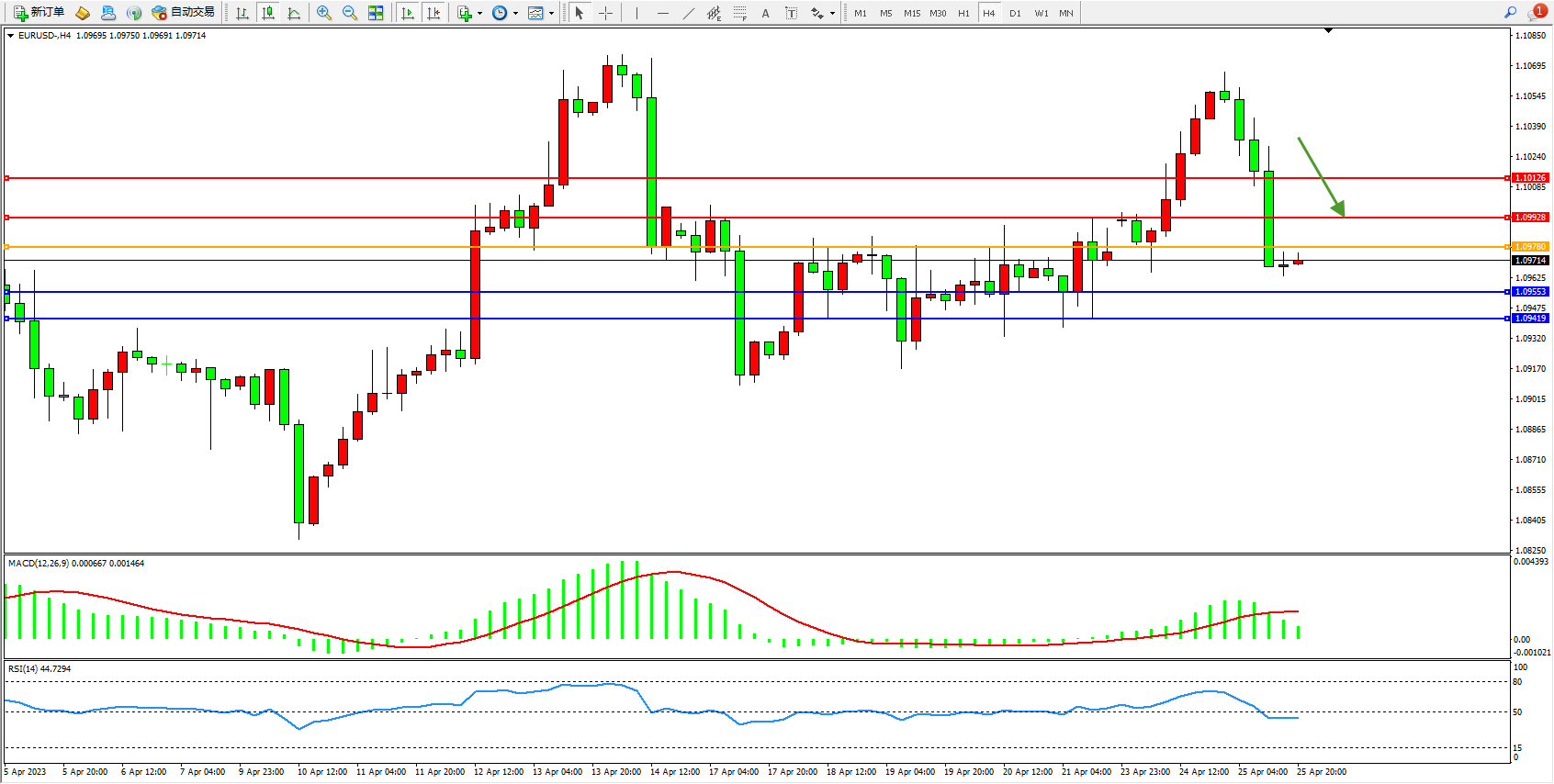 交易策略:1.09780下方看跌,目标1.09553 1.09419