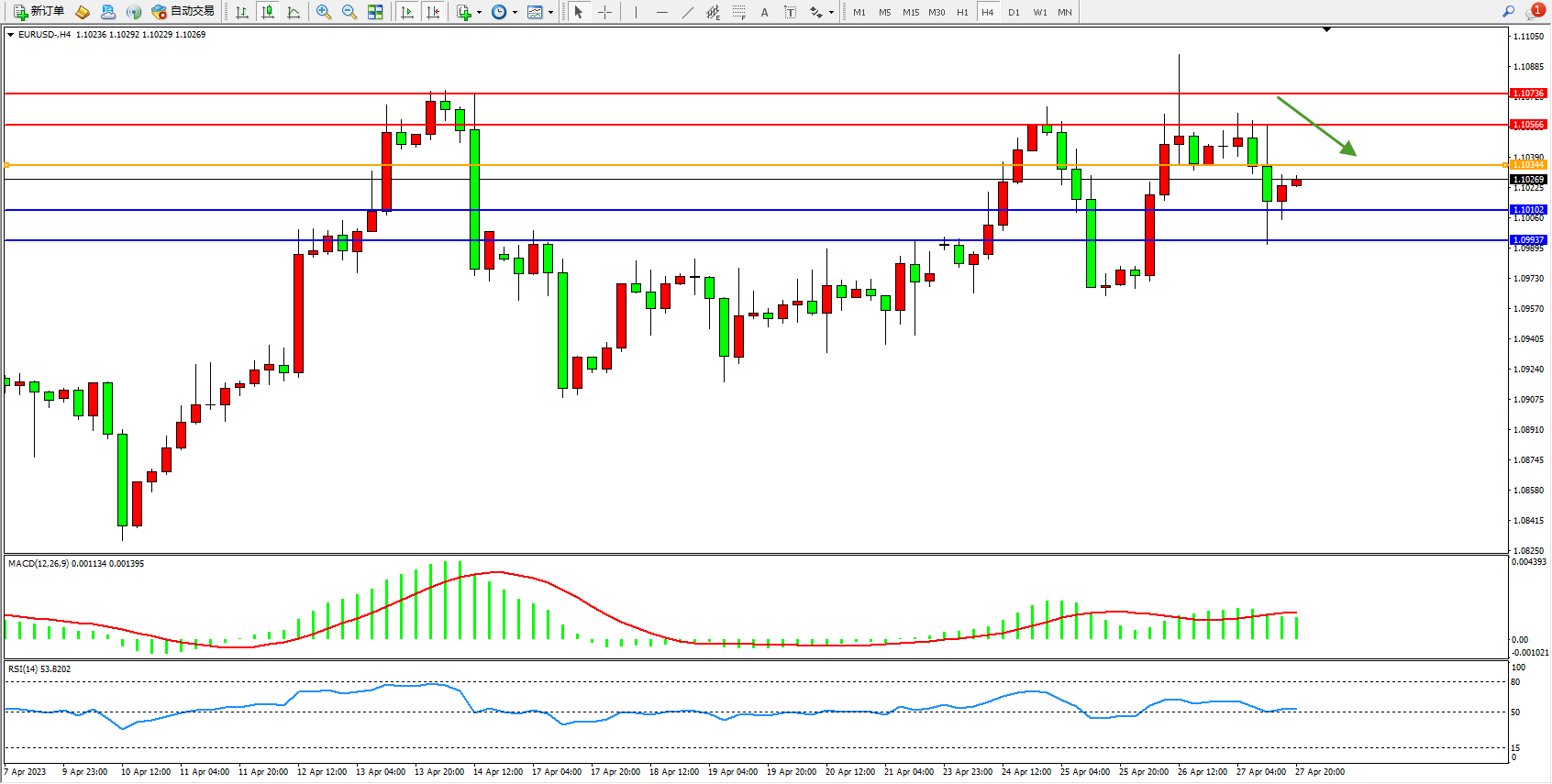 备选策略:1.10344上方看涨,目标1.10566  1.10736