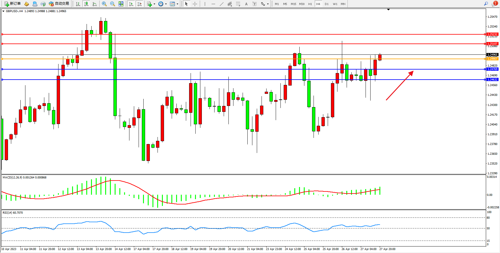 交易策略:1.24907上方看涨,目标1.25107 1.25232