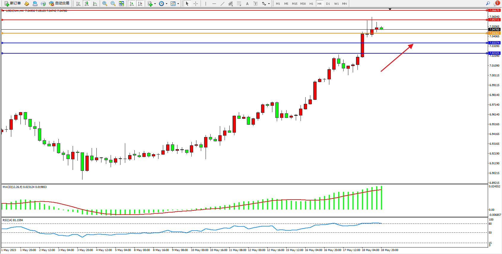 交易策略:7.04363上方看涨,目标7.05711  7.06670
