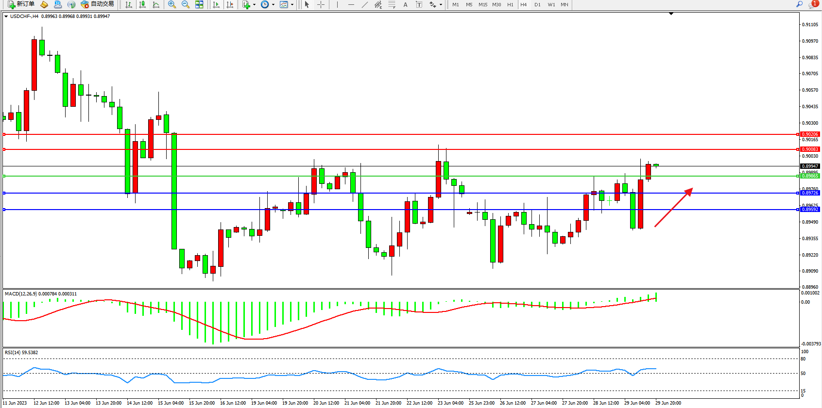交易策略:0.89865上方看涨,目标0.90083 0.90206