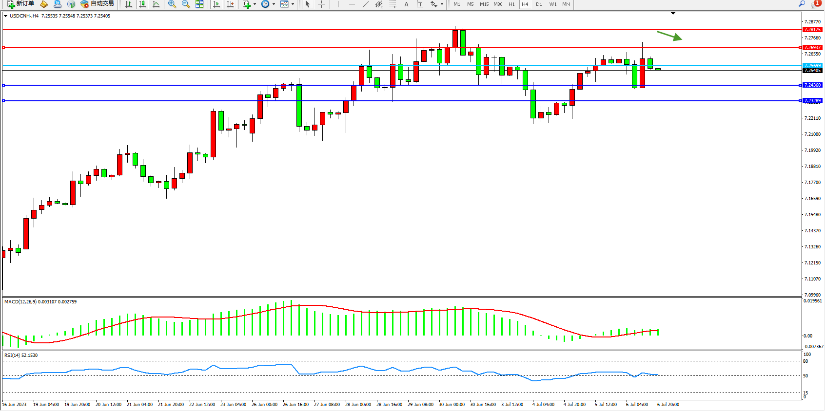 交易策略:7.25699下方看跌,目标7.24360  7.23289
