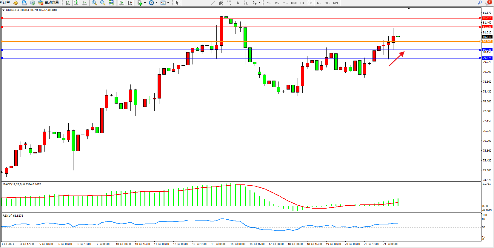 4小时图看:高位多头动力不断向上移动,短期看涨情绪笼罩,市场多头不断上行,MACD指标处于多头区域逐渐上行,RSI指标处于多头区域整理;