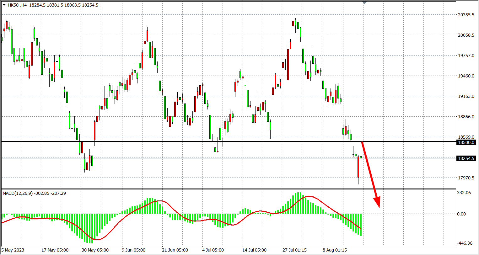 4小时图看,恒指在17900附近出现反弹,MACD量能继续于零轴下方,支撑关注18000一线,阻力继续关注18500-18800。