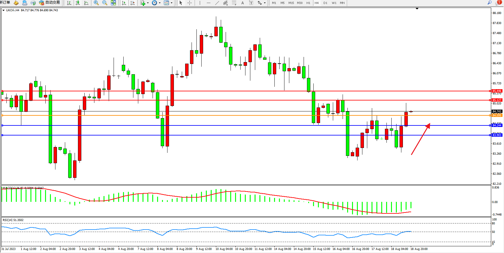 布油维持84.743附近震荡,荷兰合作银行表示,直到今年第四季度,布伦特原油都将在72-88美元的区间内交易。尽管俄罗斯原油出口减少和沙特减产令市场震动,但我们预计布油目前还不会突破这一区间。