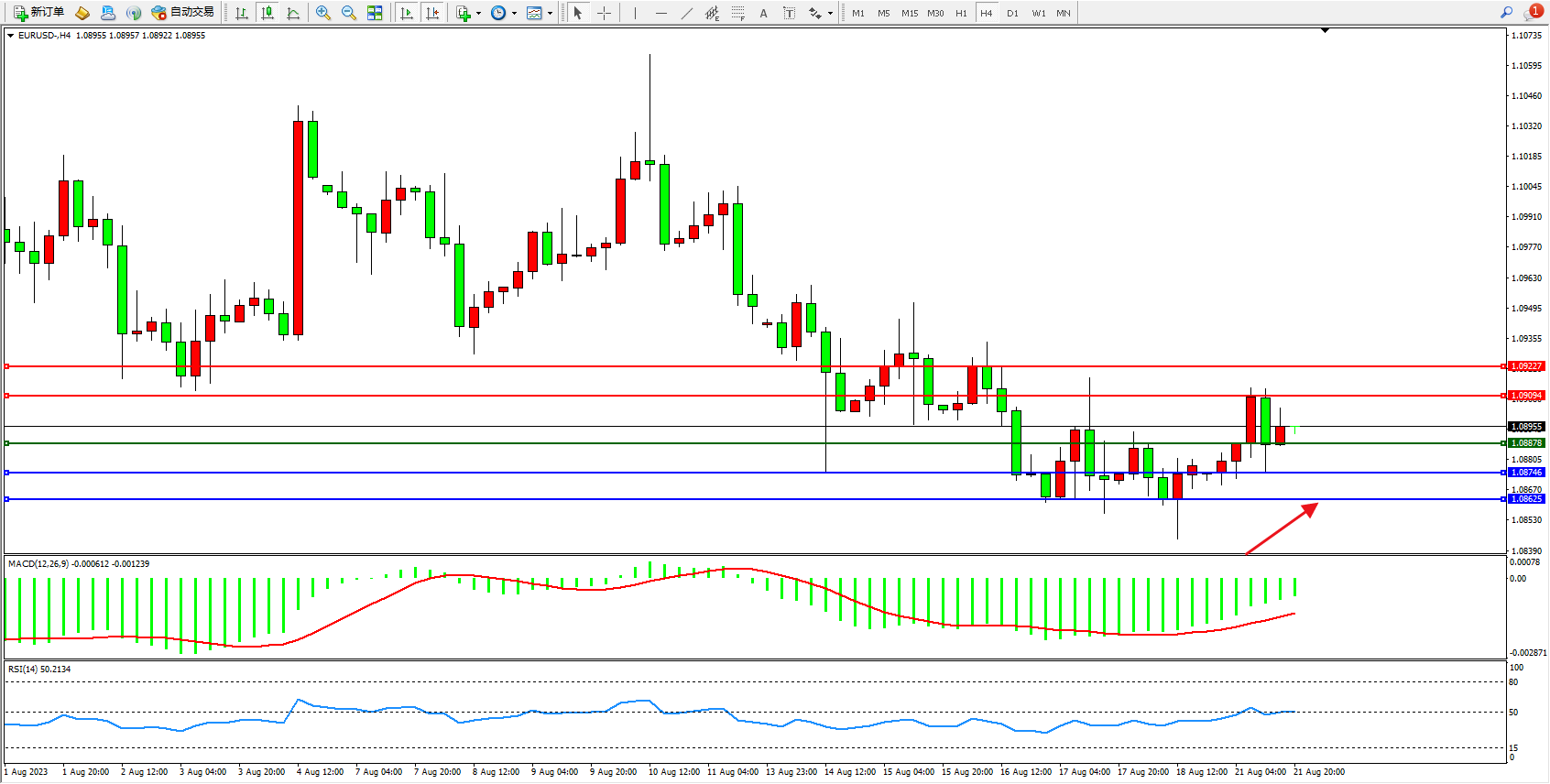 交易策略:1.08878上方看涨,目标1.09084 1.09227