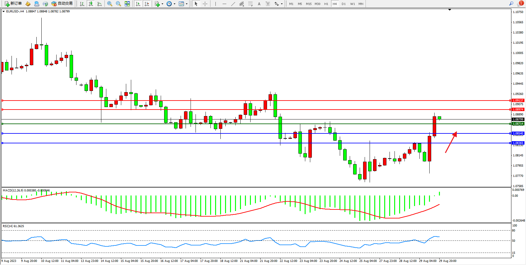 交易策略:1.08714上方看涨,目标1.08974  1.09137