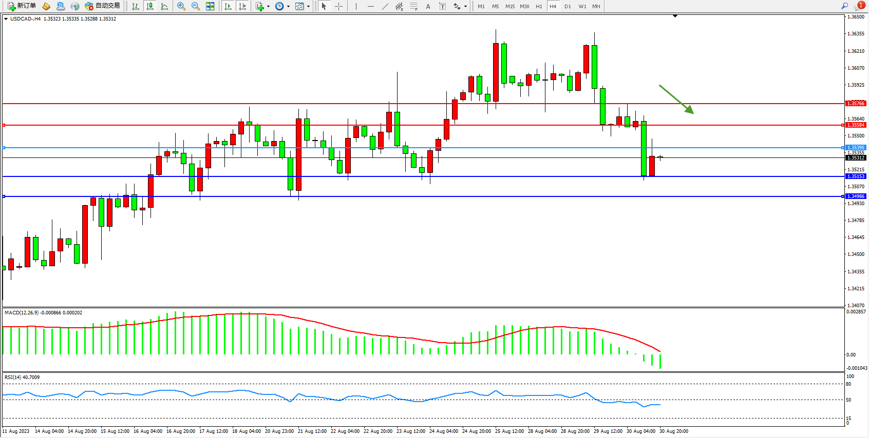 交易策略:1.35395下方看跌,目标1.35153 1.34986