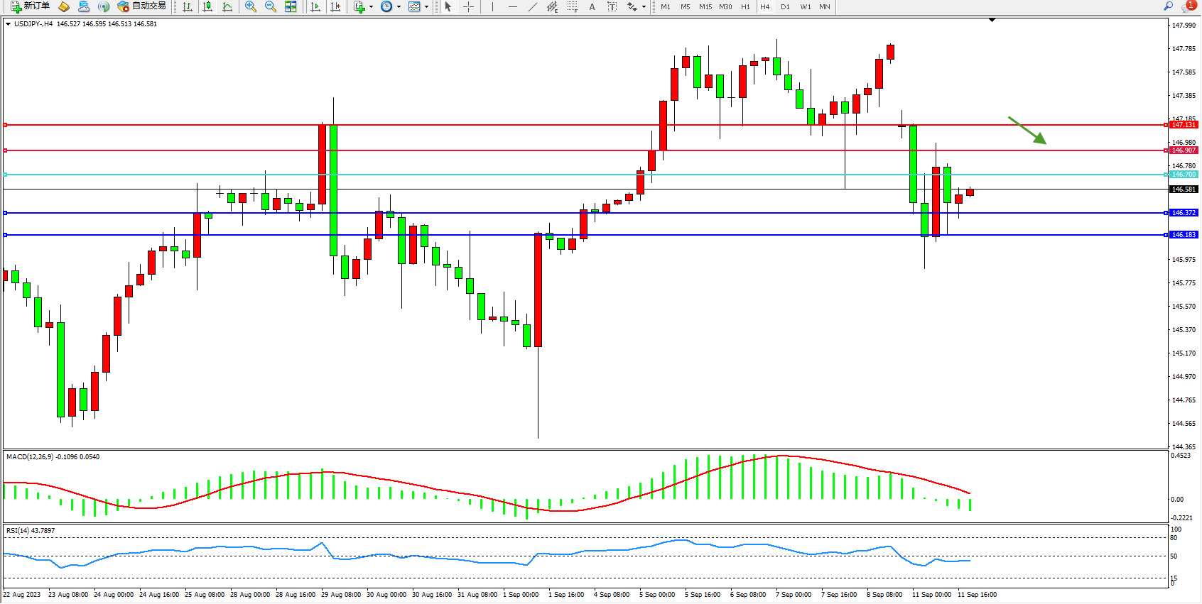 4小时图看:高位空头动力震荡下移后波幅收窄,短期维持弱势整理下行,市场空头情绪笼罩,MACD指标处于0轴线下侧弱势整理,RSI指标处于50均衡线下侧弱势徘徊;