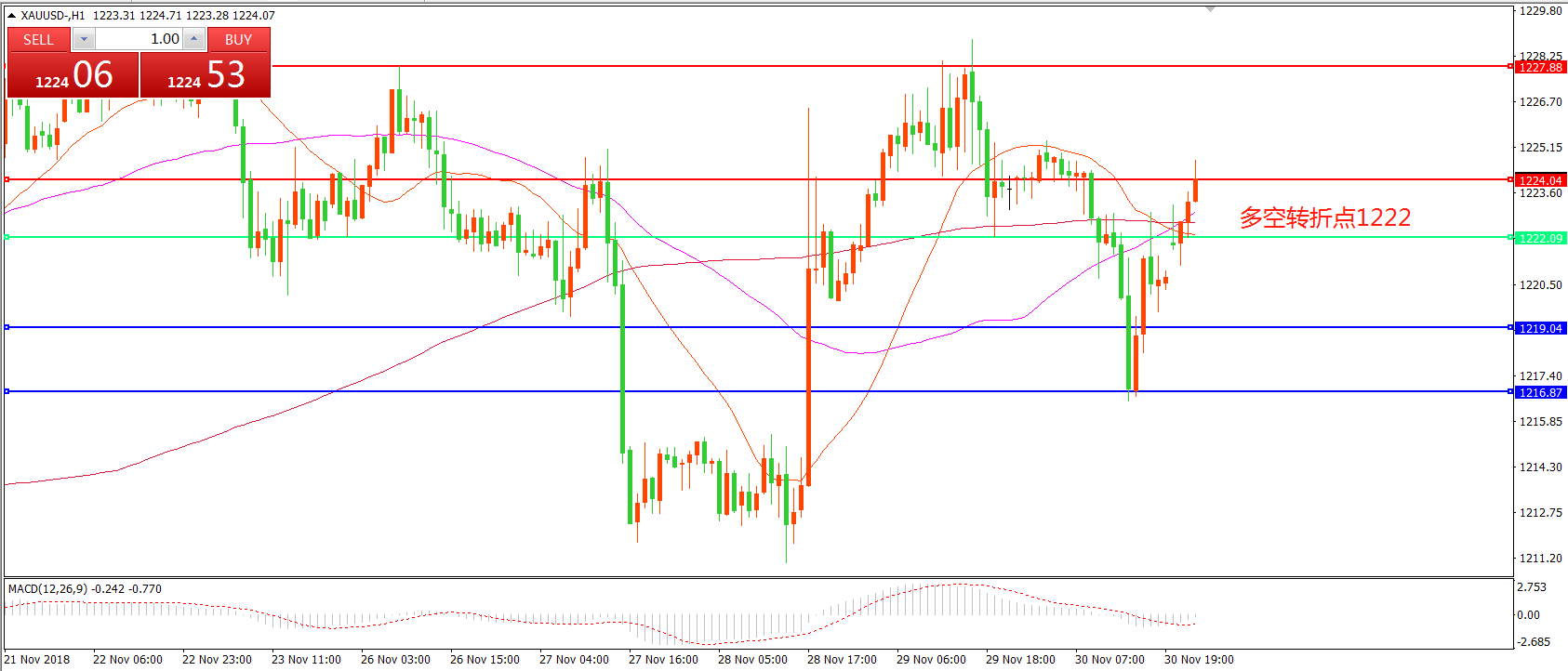 交易策略:在1222之上看涨,目标1224.00  1227.50