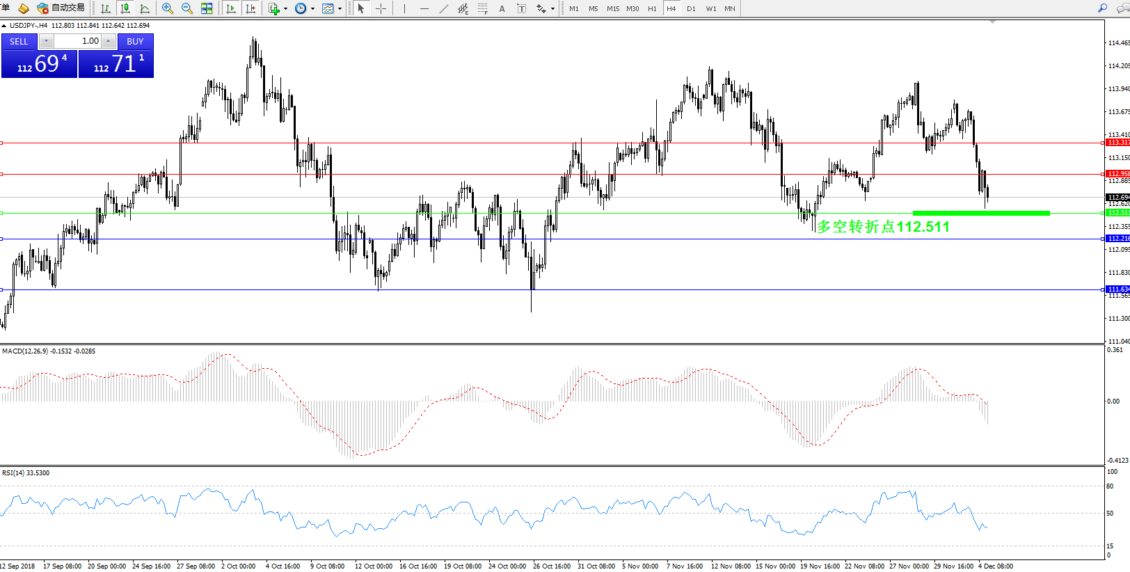 交易策略:112.511上方看涨,目标112.95、113.31