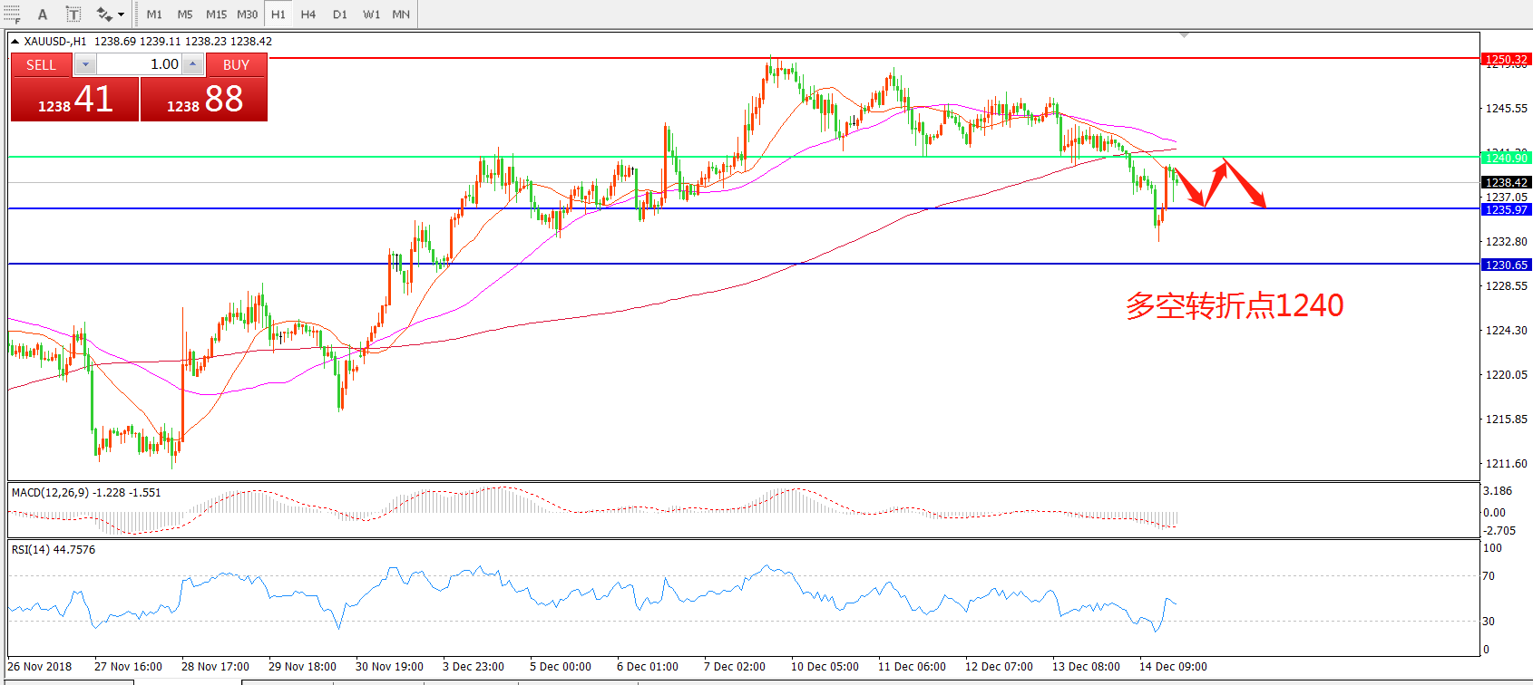 交易策略:在1240.00之下看跌,目标1236.00   1230.00