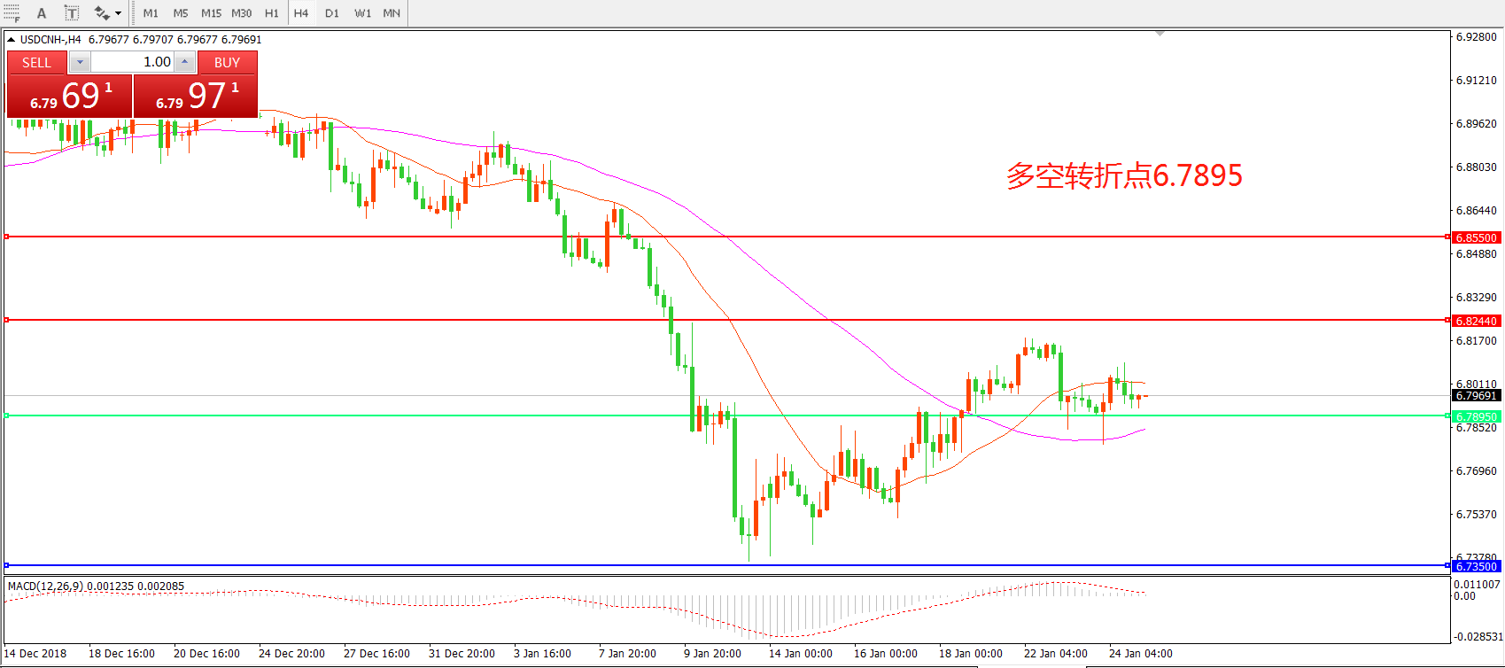 交易策略: 在6.7895之上,看涨,目标价位为6.8244,然后为6.8550。