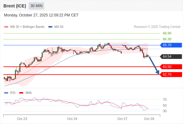 在 65.70 之下,看跌,目标价位为 63.50 ,然后为 62.70 。