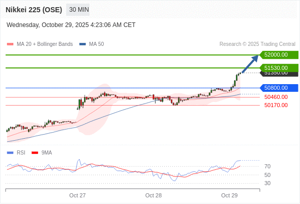 在 50800.00 之上,看涨,目标价位为 51530.00 ,然后为 52000.00 。