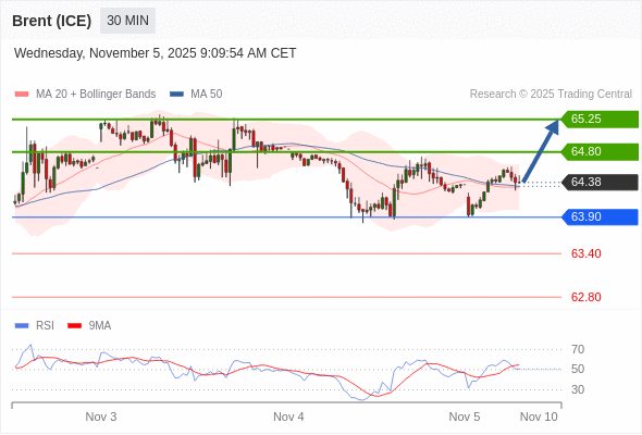 在 63.90 之上,看涨,目标价位为 64.80 ,然后为 65.25 。