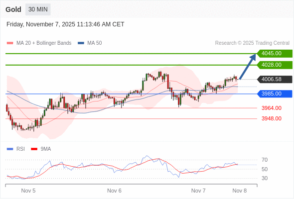 在 3985.00 之上,看涨,目标价位为 4020.00 ,然后为 4045.00 。