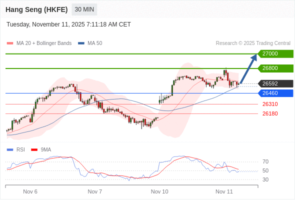 在 26460 之上,看涨,目标价位为 26800 ,然后为 27000 。