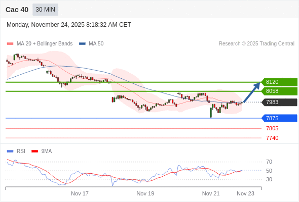 在 7875 之上,看涨,目标价位为 8058 ,然后为 8120 。