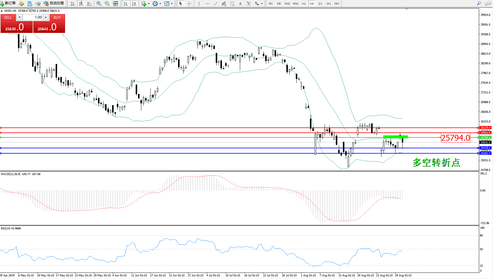 香港恒生指数830日(周五)收盘上涨21.23点,涨幅0.08%,报25724.73点;美股反弹两日,港股早上跟随外围市场大幅高开,直冲上26000关口,高见26011,随后卖盘涌现,恒指收窄升幅,并持续在适时位置上横行。目前状况胶着,经贸方面未有实际进展,加上外围及本地风险因素均未完全消除,相信大市仍会窄幅波动,阻力在26000点水平,想入市仍需谨慎。