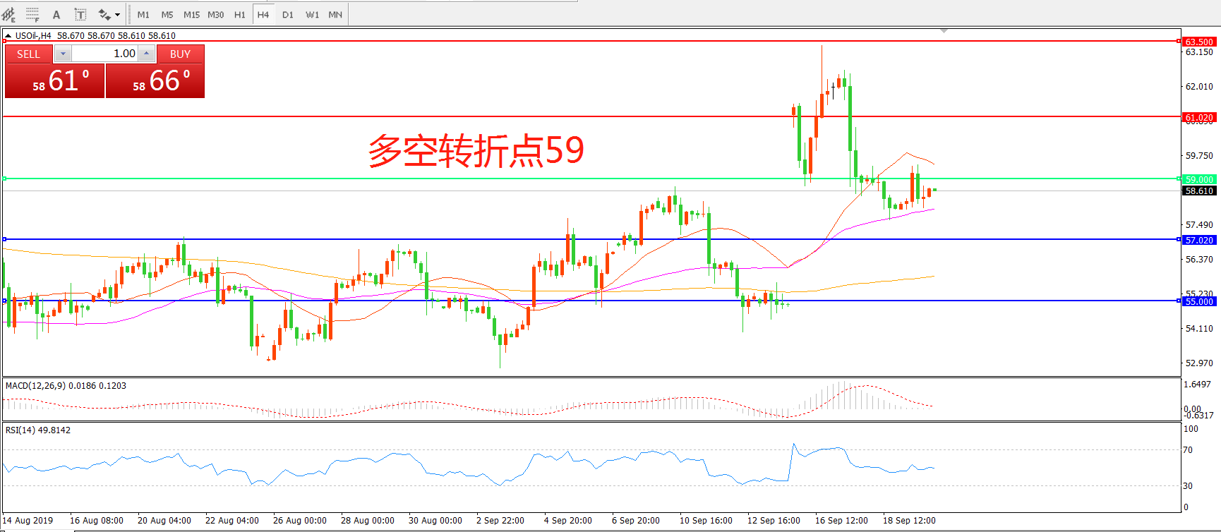 交易策略: 在59.00之下看跌,目标57.00 55.00
