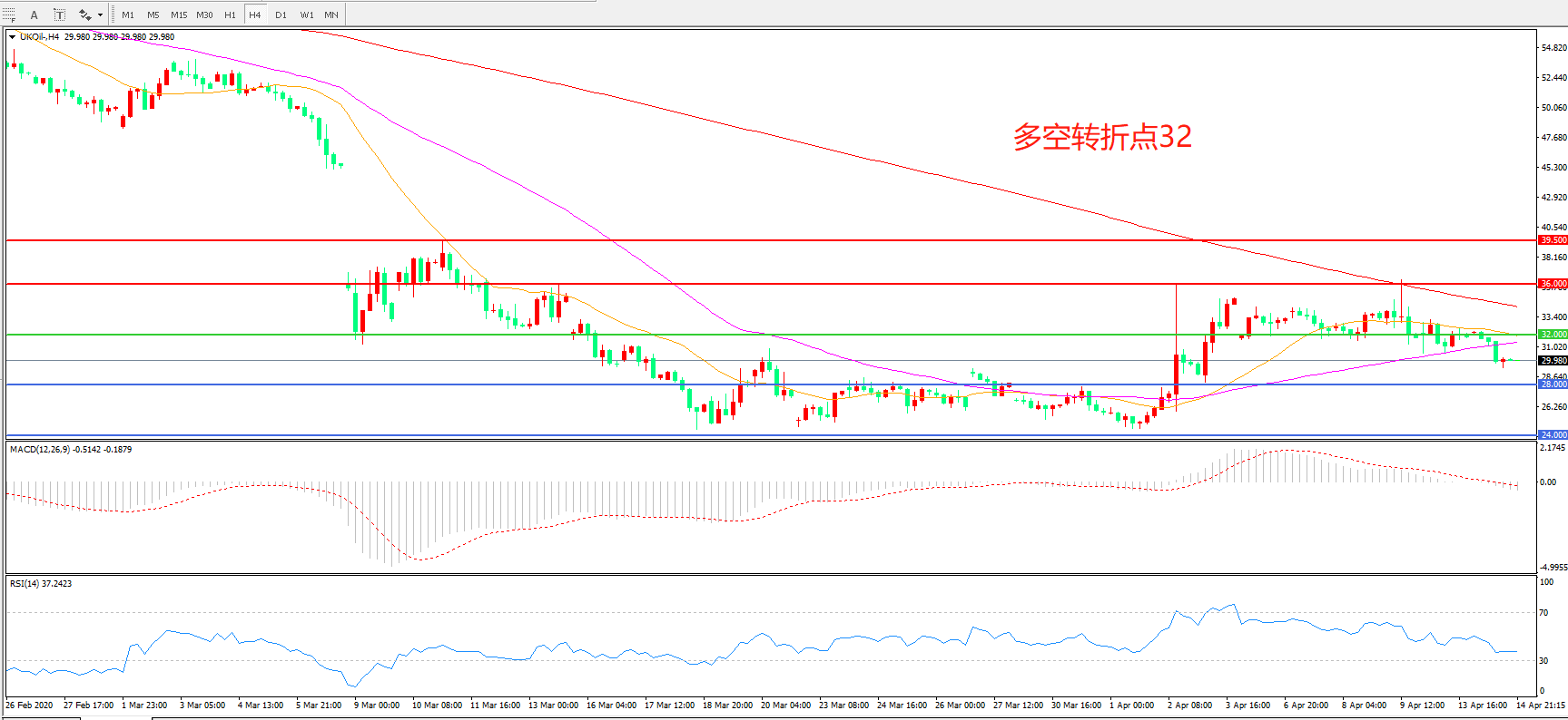 交易策略: 在32.00之下看跌,目标28.00 24.00