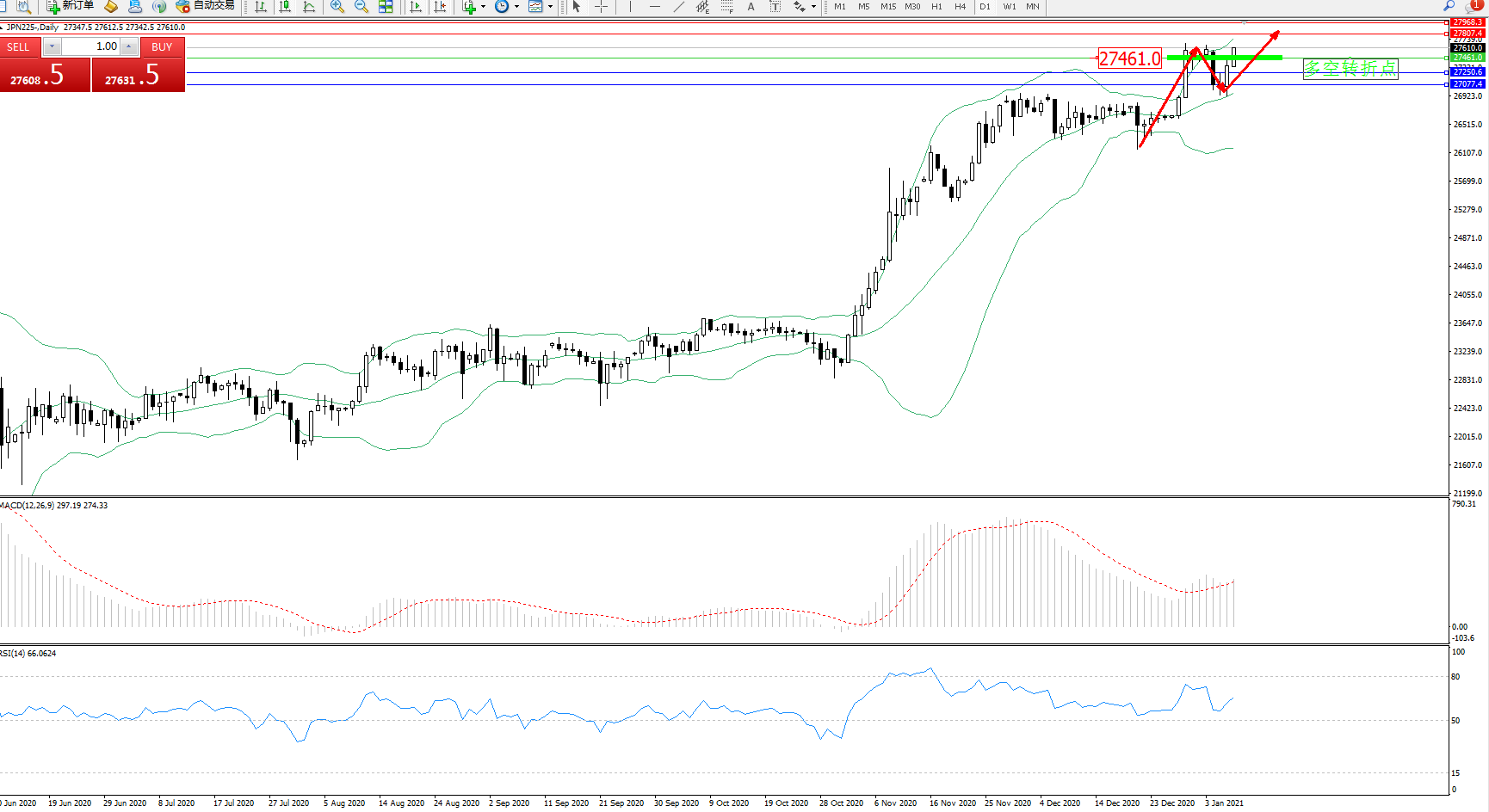 日经225指数1月7日(周四)收盘上涨400.06点,涨幅1.48%,报27456.00点。日本经济再生大臣西村康稔:将在晚上宣布紧急状态。将在适当时候决定是否在2月底期限之后延长特殊就业补贴。大阪府和爱知县新冠肺炎病例有所上升,将与专家一起分析并采取适当的措施。据日本共同社:日本兵库县新增284例新冠肺炎确诊病例。爱知县新增431例新冠肺炎确诊病例。日本《朝日新闻》报道,日本首相菅义伟以首都圈“一都三县”为对象发布紧急事态宣言,他在随后举行的记者会上表示,中韩等11个国家和地区的商务人士的新入境许可政策保持不变。疫情当前,执政党和在野党均表示应该立刻停止允许外国商务人士新入境日本的政策,决定“保持不变”再次表明了菅义伟对发展经济的重视。