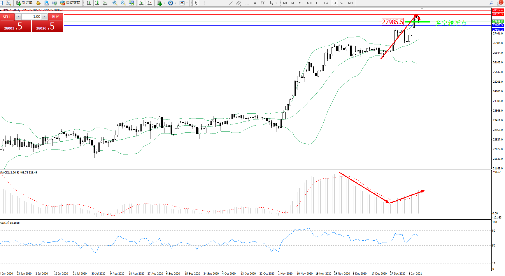 日经225指数1月8日(周五)收盘上涨629.87点,涨幅2.29%,报28120.00点。日本周一东京证券交易所因公共假日休市一天。据共同网11日报道,日本厚生劳动省10日发布消息称,从巴西抵达东京羽田机场的4名男女确诊感染了变异新冠病毒。国立感染症研究所所长胁田隆字表示,该病毒与英国和南非报告的变异病毒存在相同的部分,但也有不同的部分,因此被认为是新型。据称尚无证据表明传染力和重症化率较高,正在进行调查。巴西卫生部10日发布消息称,关于从该国出发抵达东京羽田机场的4人被检出感染新的变异新冠病毒,已请求日本政府提供4人的国籍和在巴西的移动路径等信息。