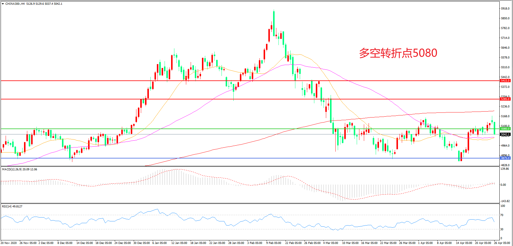 周一(4月26日),A股三大指数集体高开后震荡回落,午后集体走低,酿酒与券商板块大幅跳水,沪深300冲高回落,收报5042.1点。市场成交量持续放大,两市合计成交9084亿元,北向资金净买入32.04亿元。从盘面上看,临近五一,资金做多的意愿不足,部分板块出现回落迹象。